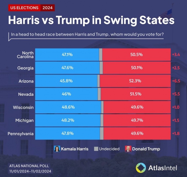 Trump steigt aktuell bereits auf 61,6%, Harris fällt auf 38,6%  Stand 01:25